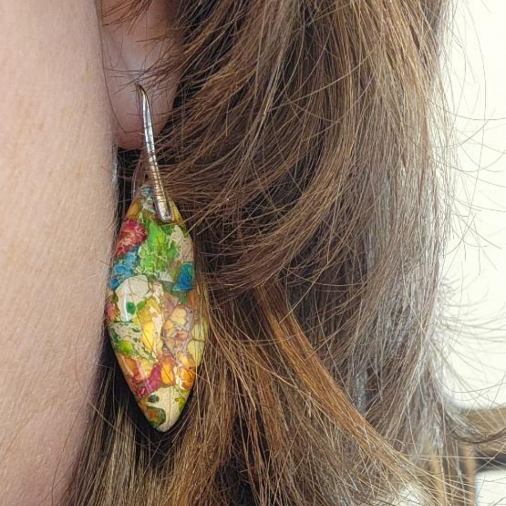 - Each earring is unique because of natural stones.