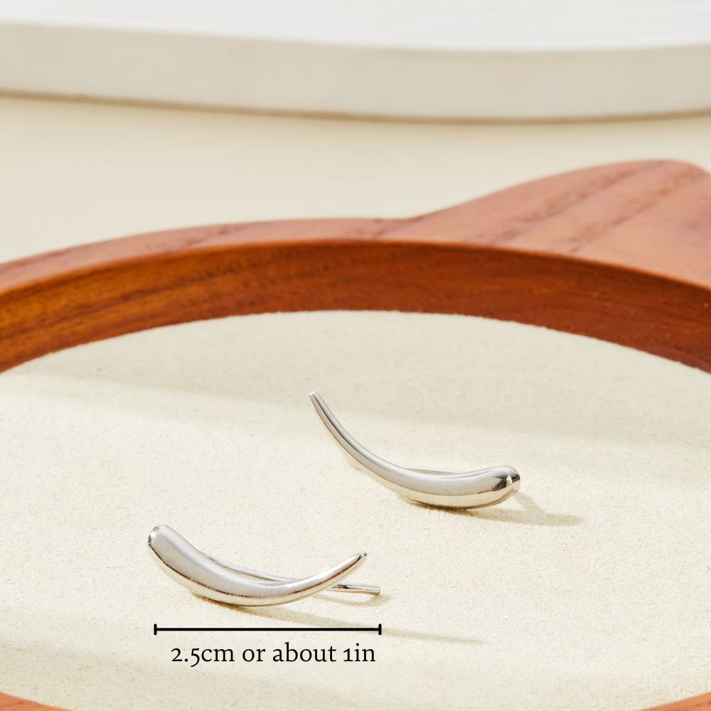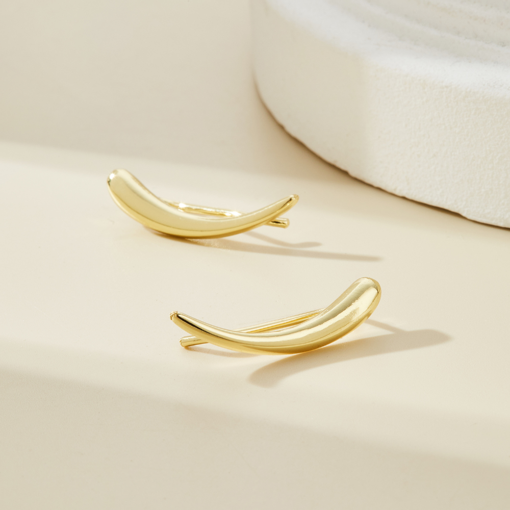 Elevate your style with the stunning Celestial Glide Earrings, a perfect blend of modern elegance and celestial charm. These gold minimalist ear climbers feature a delicate crescent moon design that gracefully glides up your ear, creating a captivating and unique look.