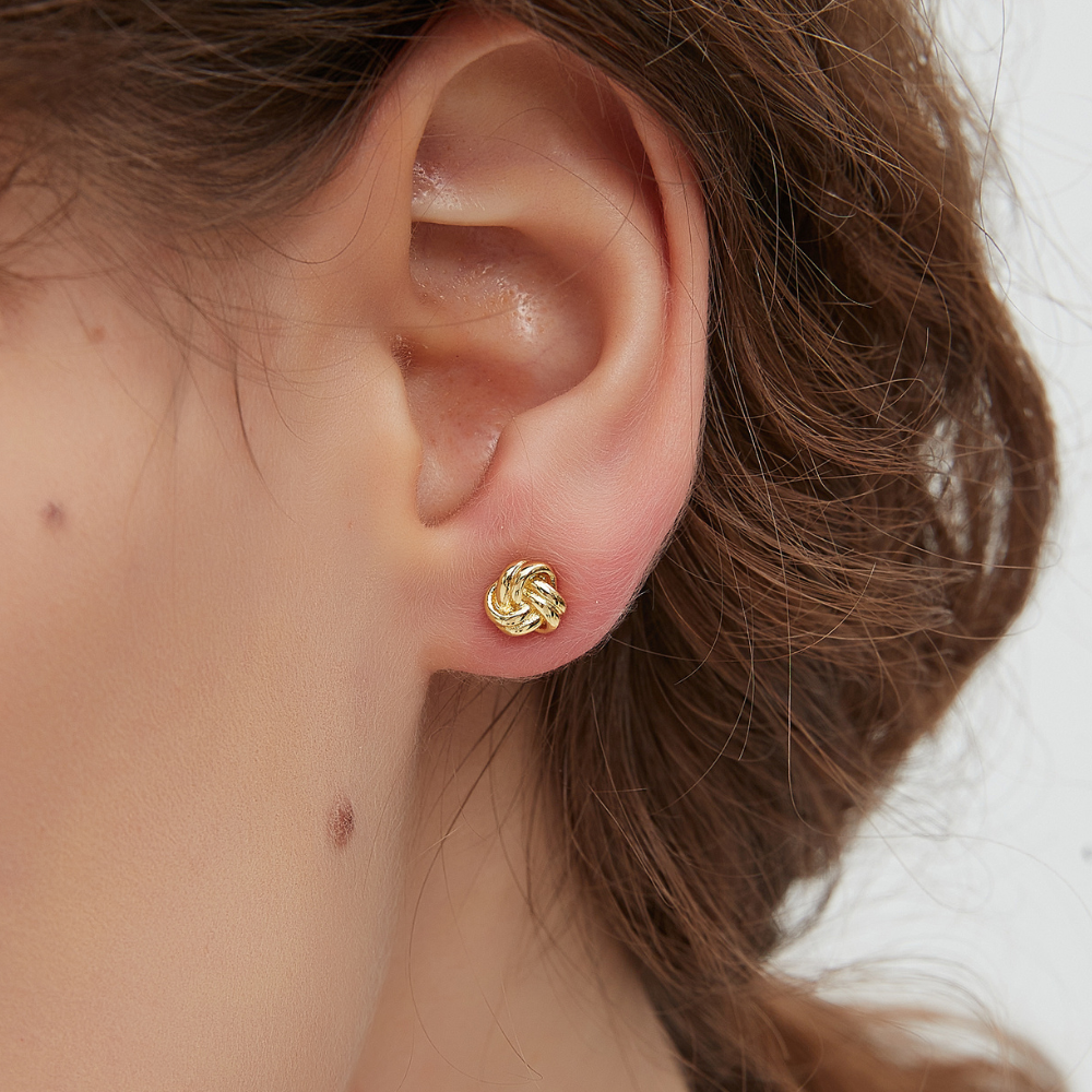 A: The Dainty Knots Earrings are made from highly-durable gold plated copper and durable S925 sterling silver needle.