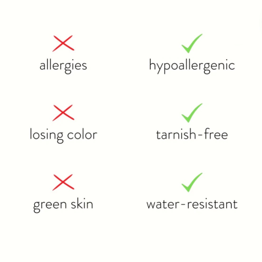 Made with waterproof stainless steel, you never need to worry about green fingers, fading or tarnishing jewelry ever again!